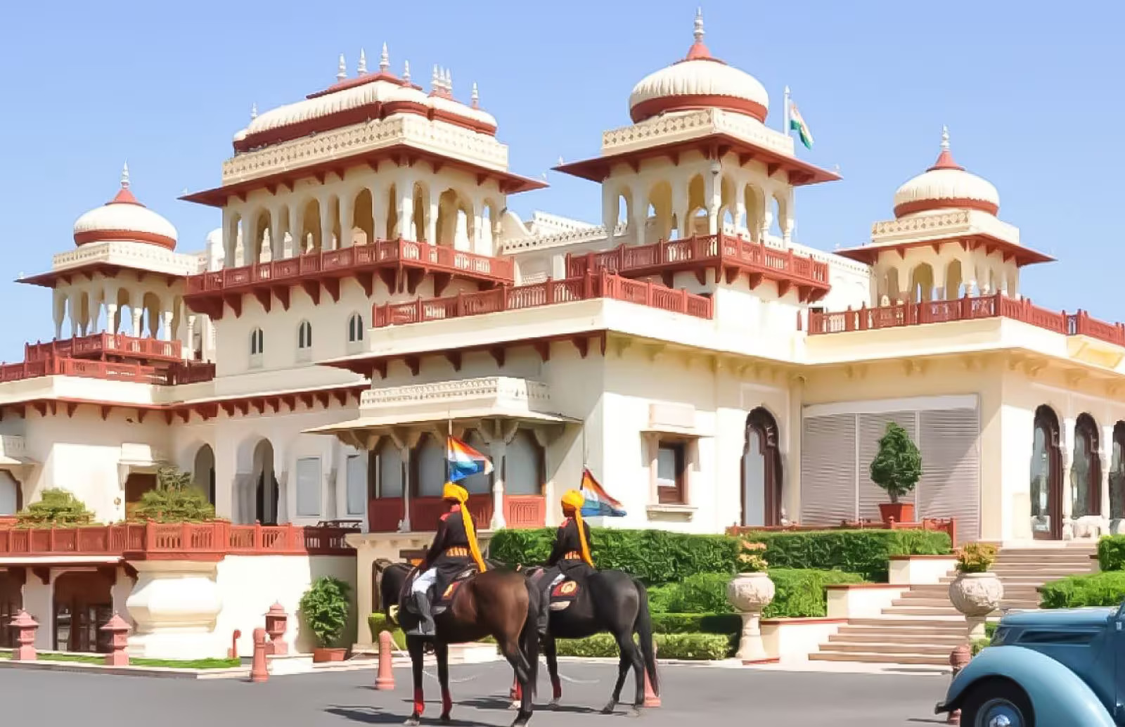 Once the royal residence of Jaipur’s Maharajas, Taj Rambagh Palace is an exquisite heritage hotel blending Rajput and Mughal architecture with modern luxury. Set amidst lush gardens, fountains, and courtyards, it offers elegantly restored rooms, fine dining, and serene spa facilities, letting guests experience the grandeur and charm of royalty in comfort.